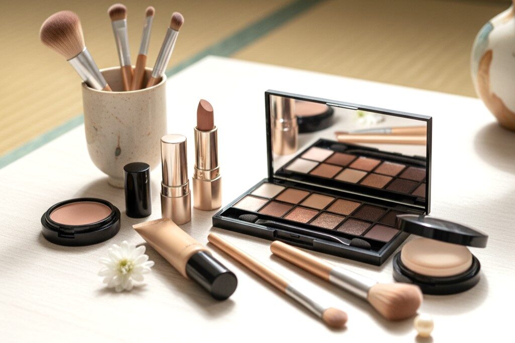 - アイシャドウ: 原則として使いません。もし使うとしても、肌色に近いマットなベージュ系をほんのり乗せる程度に留めます。ラメやパール、ブラウン系でも濃い色や赤みのある色は避けましょう。
