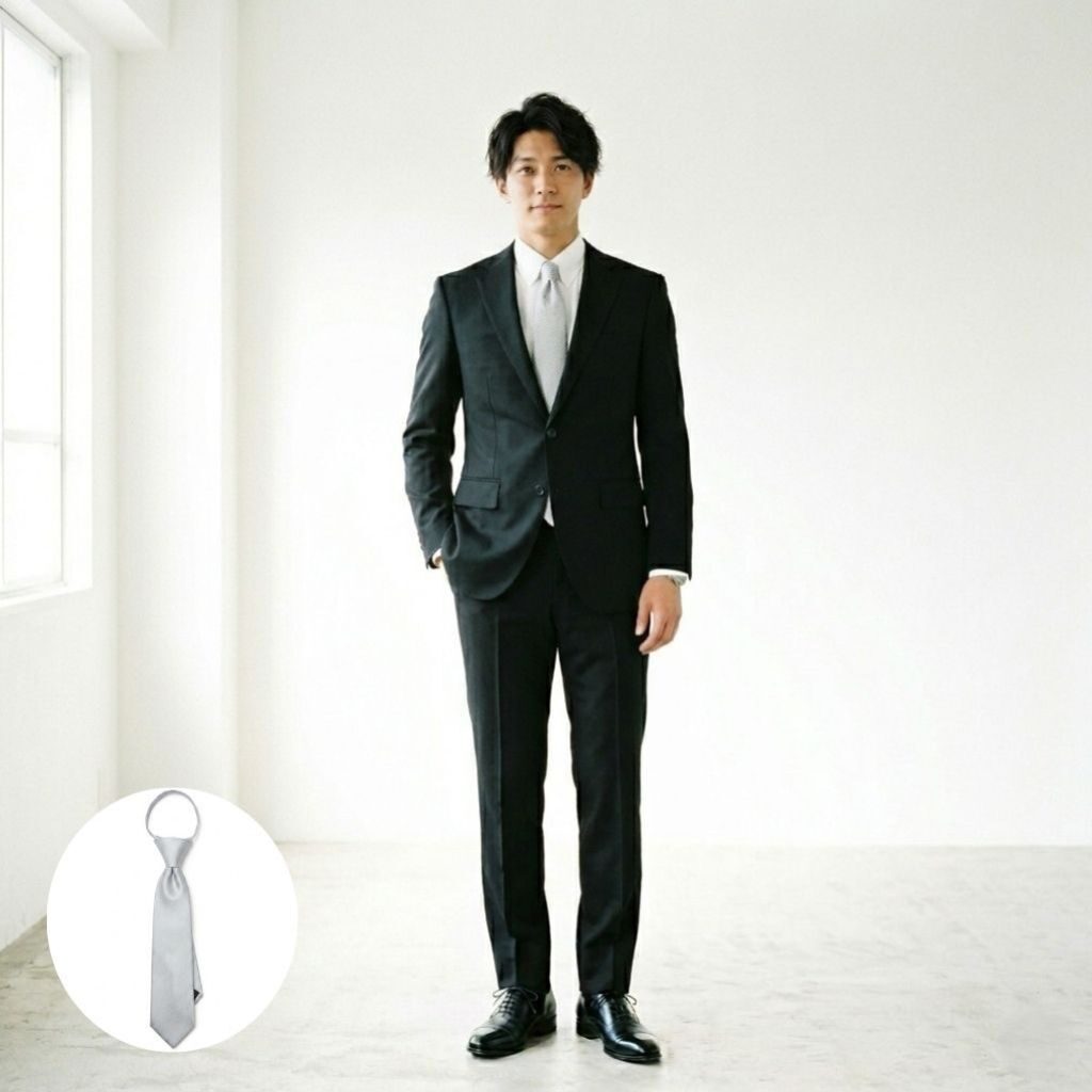 ●ネクタイは、通常のご自身で結ぶタイプとワンタッチタイプをご用意。