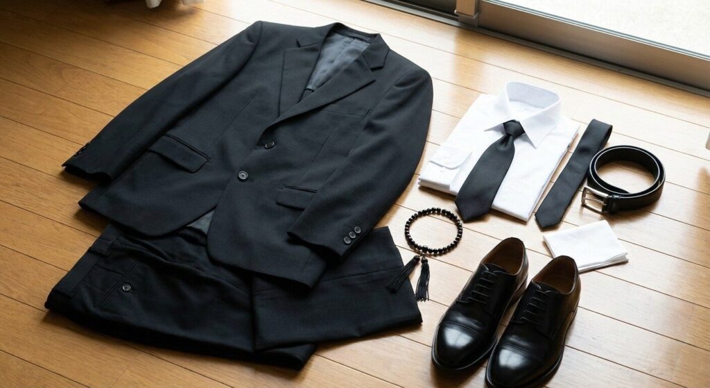 一式(礼服上下・シャツ・ネクタイなど)を揃えると、安くても3万円〜7万円程度かかります。 - 「喪服のミライ」でレンタルする場合: